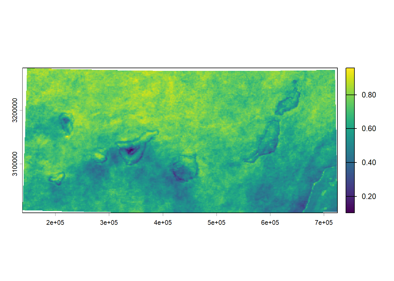 plot(modis_1km) # rate 0 to 1 = (0-100%)# resample cloudiness at 4 km