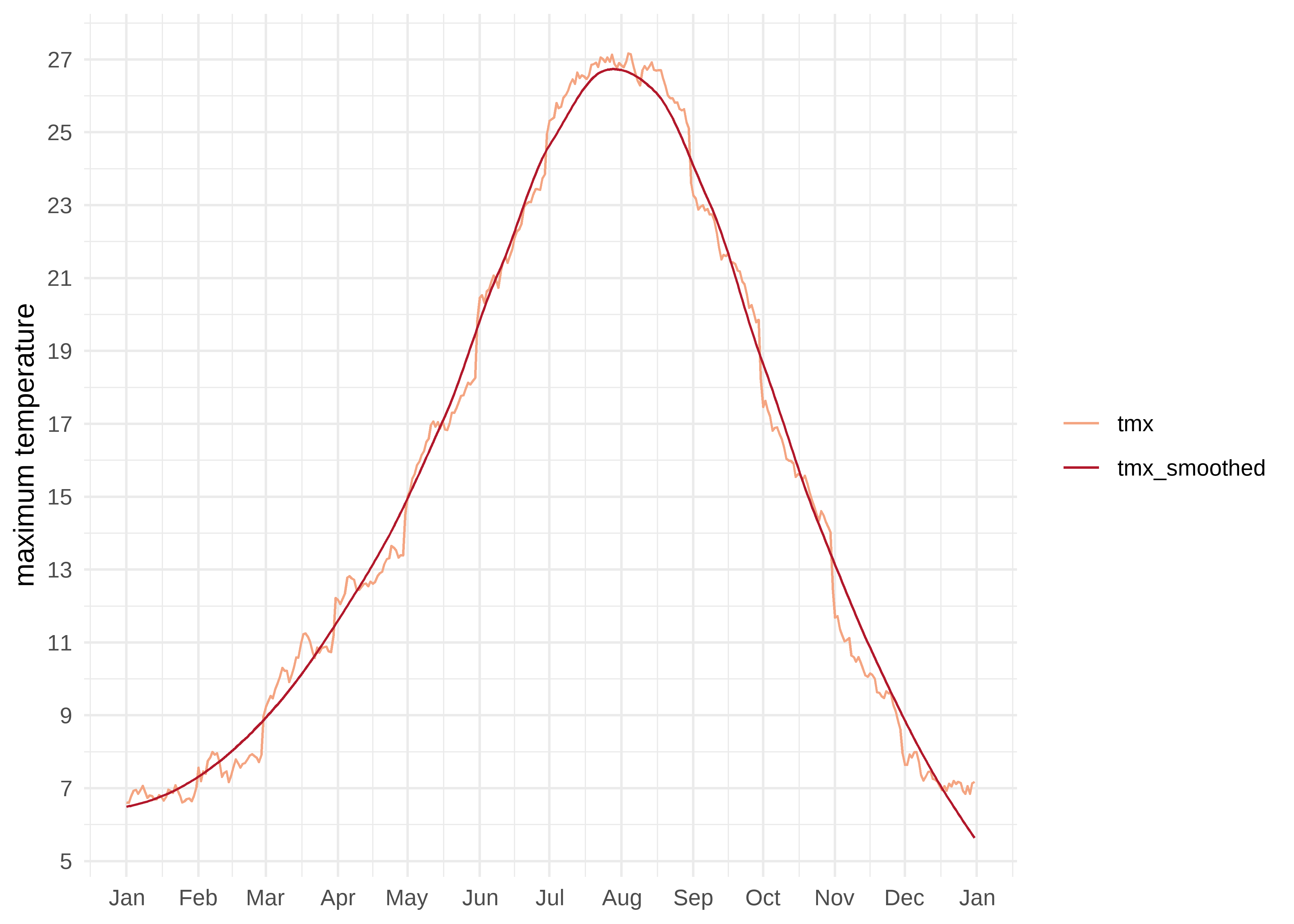 df <- mutate(df, tmx_smoothed = daily_smooth(tmx)) |>