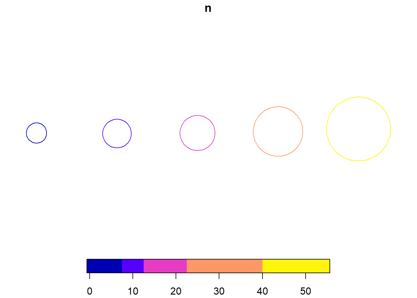 plot(legend_dat["n"])A more compact alternative legend would be collapsed circles, which can be achieved by changing the position with respect to the largest circle. However, the legend in this case remains small because of the maximum size of the circles. An increase in the size of the circles would lead to overlapping between different locations.