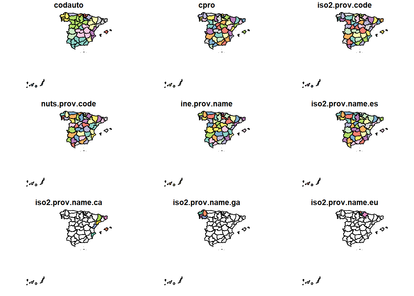 | mapSpain | Administrative boundaries of Spain at different levels |